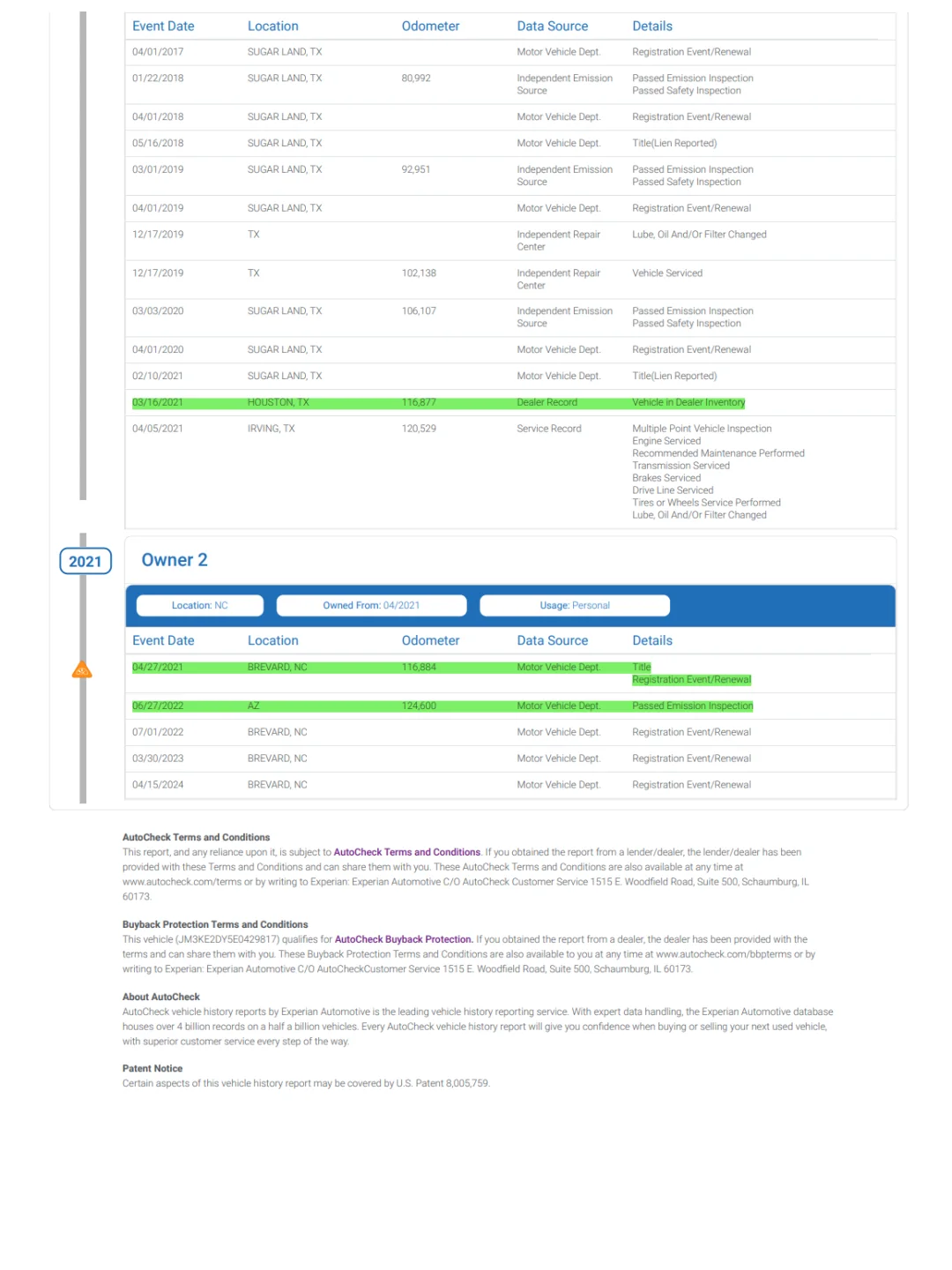 本报告提供的所有内容仅基于截止到报告购买日期收集到的相关数据,所有数据均来自第三方。由于部分数据无法被采集,所以我们不做准确性,真实性,完整性承诺(即本报告上的内容该车真实发生过,但不表示该车只发生过报告上的内容)由于我们的数据来源并非记录事故的第一手资料,所以无法作为法律取证资料(但会尽力帮助顾客维权)。不同数据格式及记录详细程度会存在差异,此为行业正常现像。本报告仅作交易参考资料之一,请结合实车勘验结果和试乘体验,做出更准确的决策。